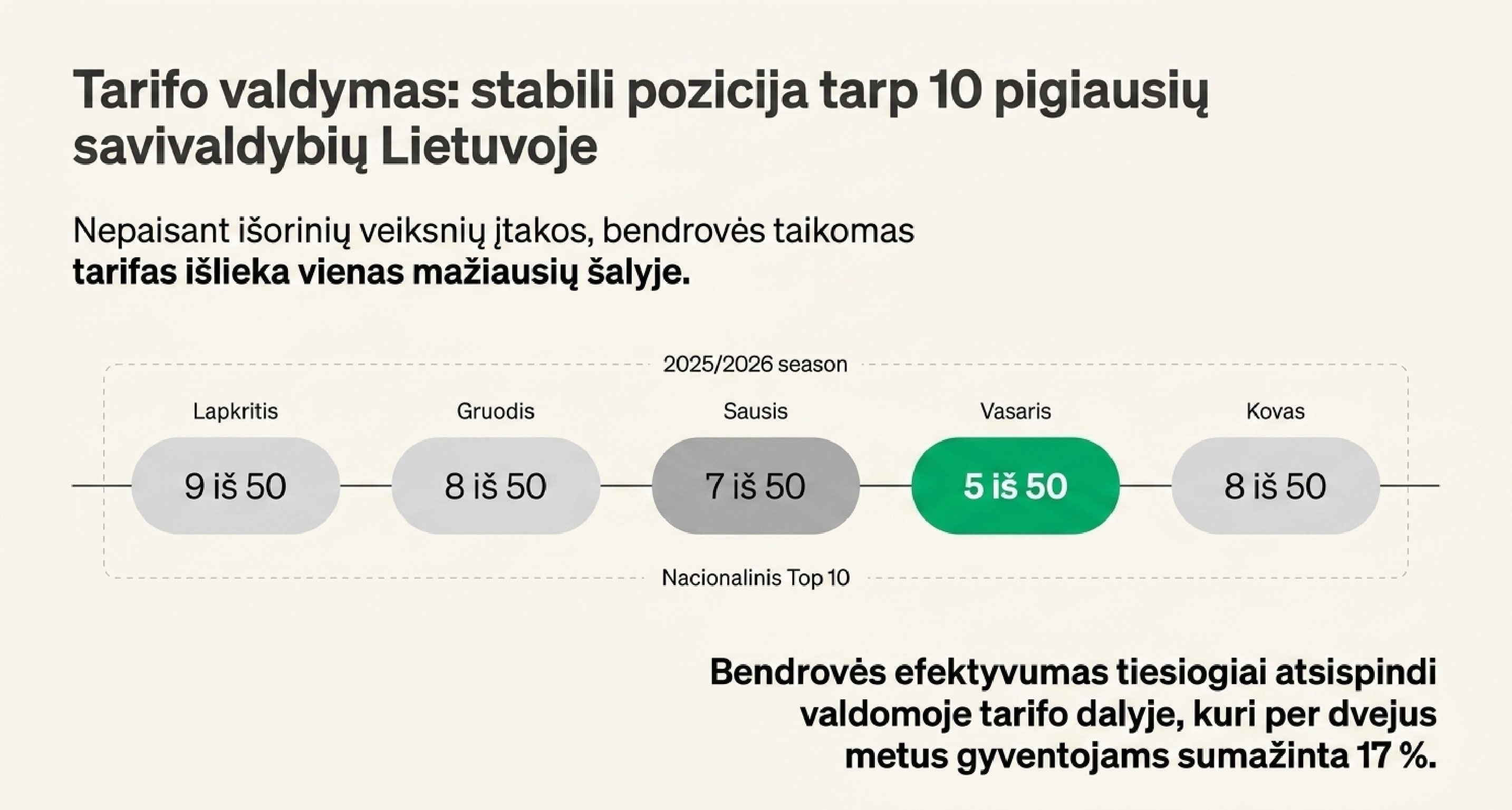 Tai reiškia, kad net ir didžiausio šilumos poreikio laikotarpiu tarifas išliko vienas mažiausių šalyje.